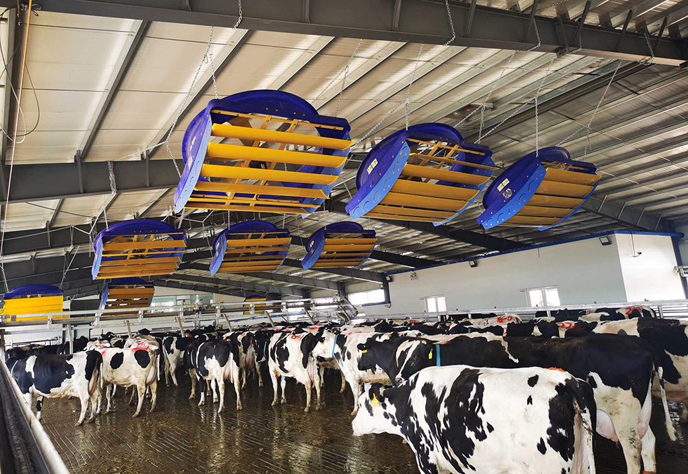 Вентиляционный и охлаждающий вентилятор Terrui работает, привлекая свежий воздух снаружи и циркулируя его по всему корпусу скота. Этот процесс помогает регулировать температуру и поддерживать оптимальное качество воздуха. Мощный двигатель вентилятора обеспечивает эффективное движение воздуха, эффективно удаляя излишки тепла и влаги из окружающей среды. Одновременно он помогает снизить концентрацию вредных газов и частиц пыли, способствуя созданию более здоровой среды для скота. Скорость вентилятора можно регулировать в соответствии с уровнями температуры и влажности, обеспечивая комфортную и свободную от стресса среду для животных. С вентиляционным и охлаждающим вентилятором Terrui вы можете обеспечить лучший уход за своим скотом.